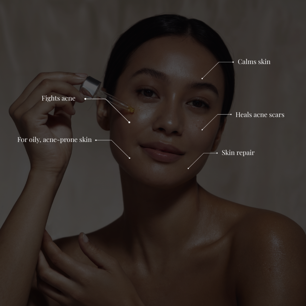 Benefits : Fights acne & blemishes Calms redness & irritation Heals acne scars & marks Strengthens skin barrier