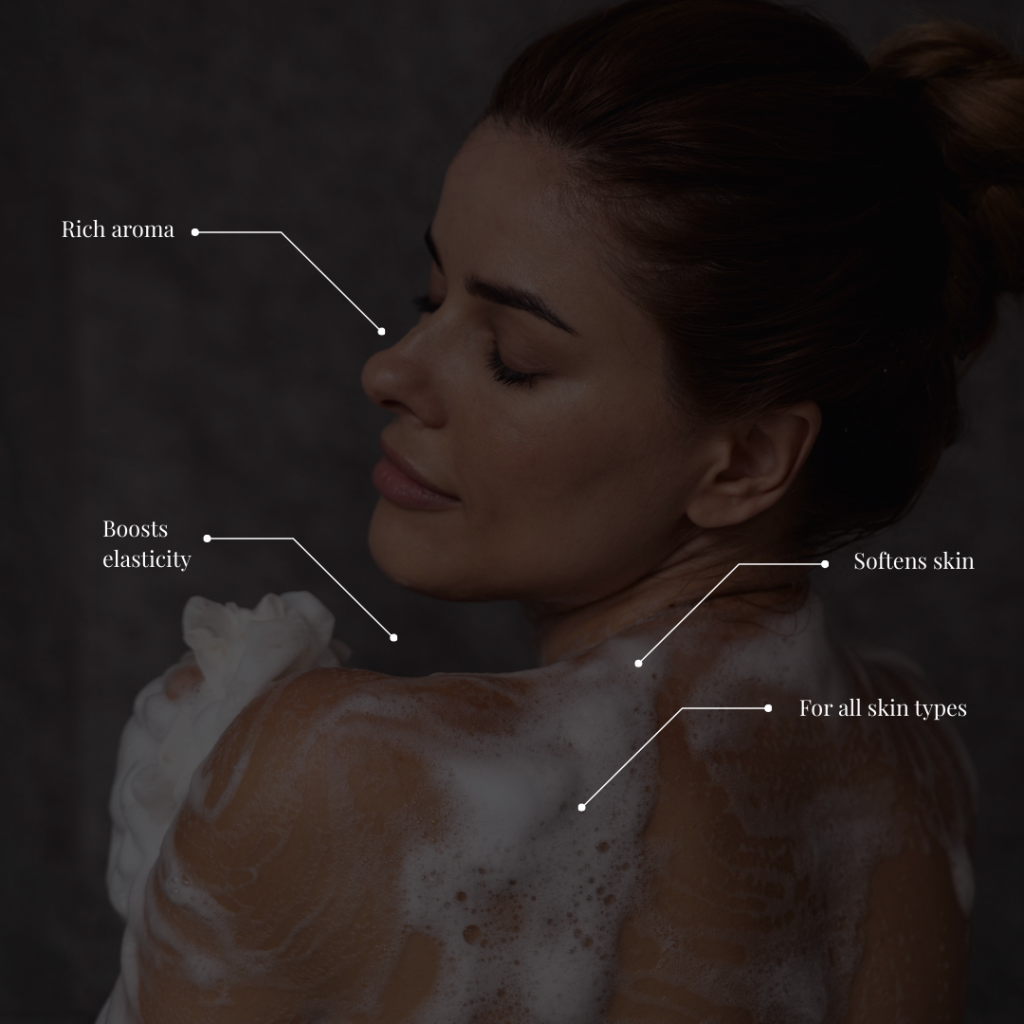 Benefits : Boosts skin elasticity Softens and smooths texture Rich, long-lasting floral aroma Suitable for all skin types