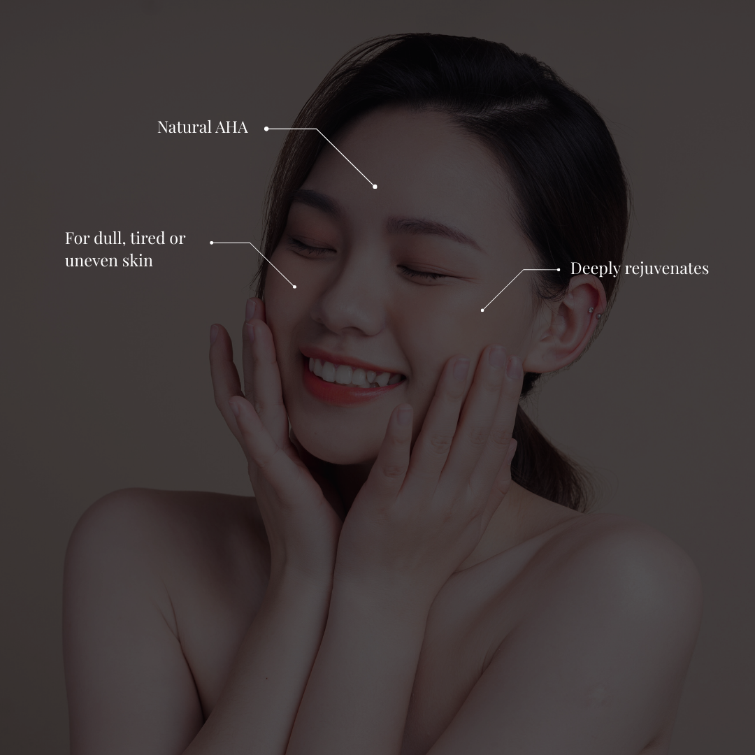 Benefits : Provides natural exfoliation with AHAs Brightens dull skin Deeply rejuvenates tired skin Evens skin texture
