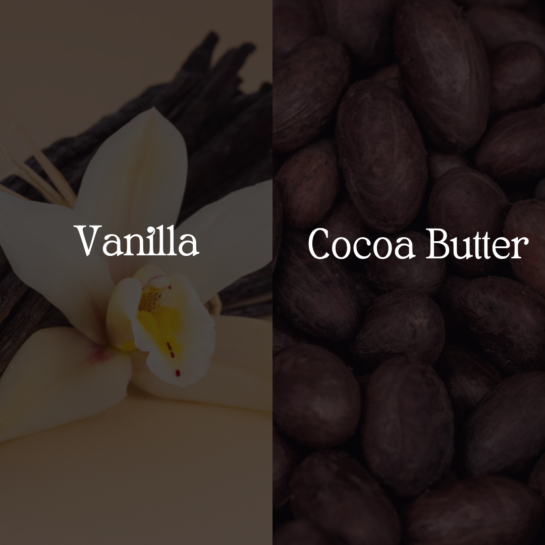 Key ingredients : Vanilla – soothing & calming Cocoa Butter – hydrates & heals Shea Butter – locks in moisture
