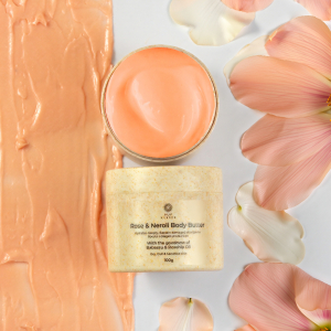 Think of this as a hug for your skin. With the delicate blend of rose and neroli, this body butter deeply hydrates, repairs damaged skin barriers, and boosts collagen. The result? Velvety-soft skin that feels nourished, pampered, and lightly kissed with a floral fragrance.